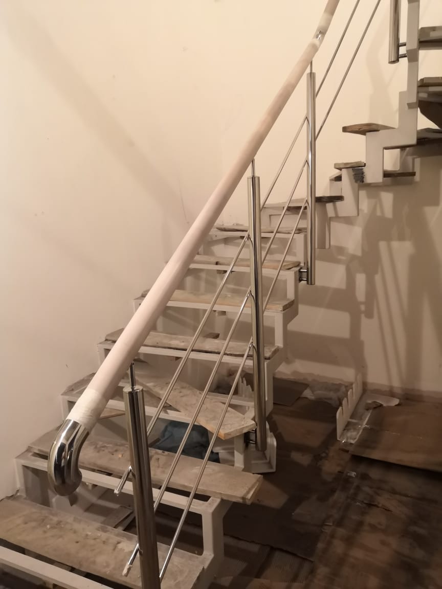 Ограждения с двумя ригелями обеспечивают оптимальную безопасность при подъеме и спуске, сохраняя при этом лёгкость и аккуратный внешний вид. Все элементы изготавливаются из качественной нержавеющей стали марки AISI 304 или 201, что обеспечивает стабильную геометрию и привлекательный блеск поверхности на долгие годы.
